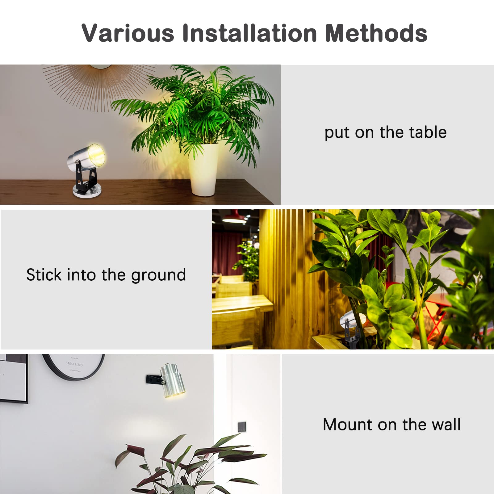 Led Indoor Spot Light For Plants Accent Lighting Uplight Down Spotlight For Potted Plants Home Living Room 3w Led Decorative 110v Lamp With Plug For Interior Wall Warm